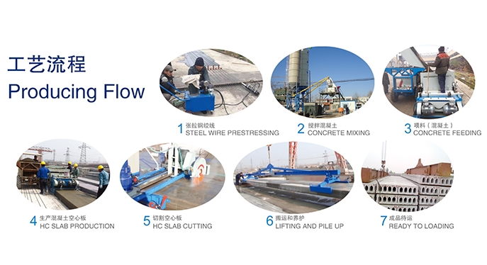 GLY系列的空心板機是先做好混凝土平臺上生產作業(yè),預先張拉好高強度、低松弛鋼絞線,運用擠壓推進的工作原理來制造混凝土空心板,所生產出來的板材具表面光滑,密實度高、跨度大等優(yōu)點。生產出的空心板長度可在4. 2米到18米的范圍內任意切割,主要用于建造大開間廠房、住宅、學校、醫(yī)院、商場、辦公樓和大型倉庫等建筑物。